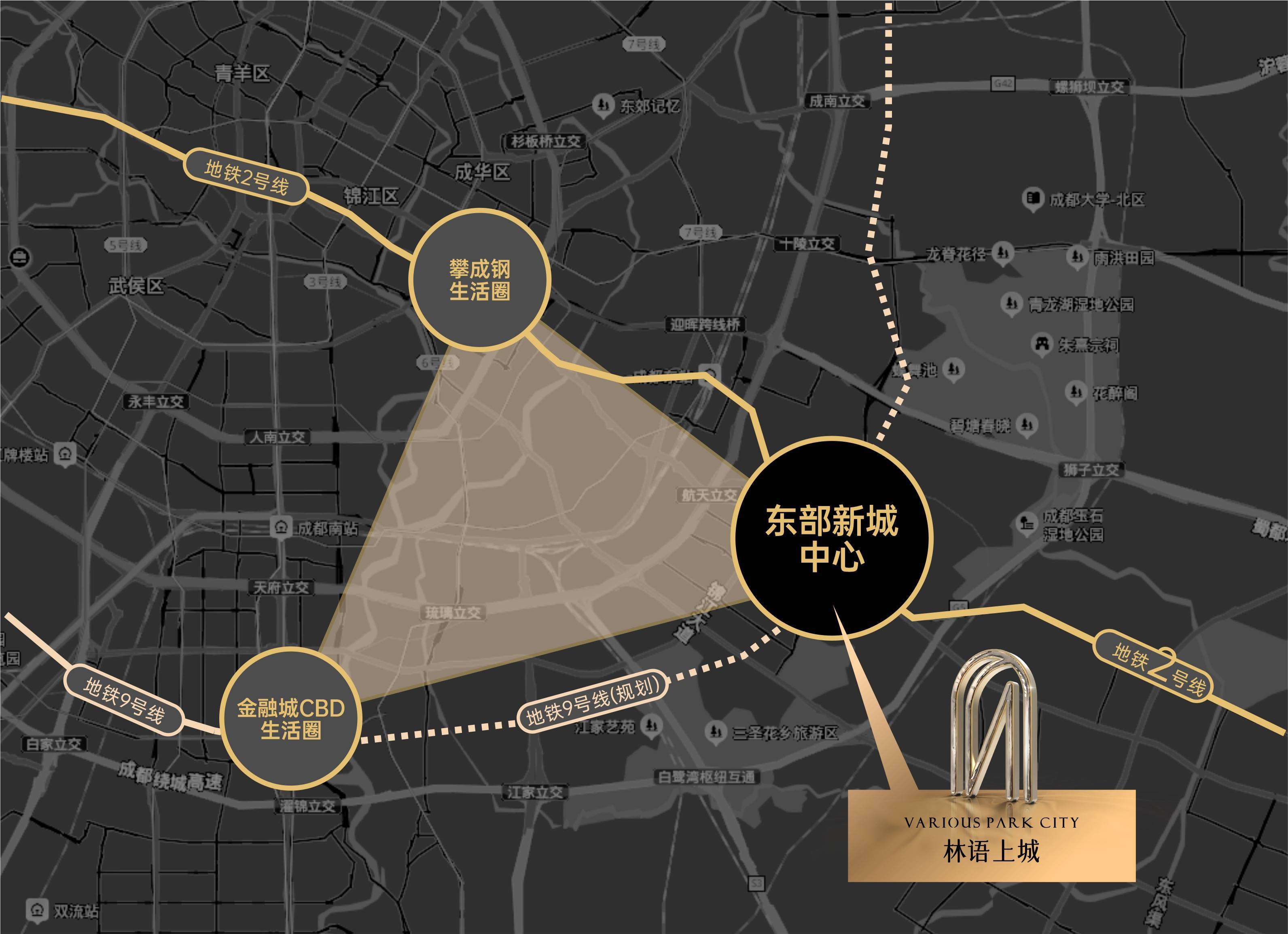 锦江大道3.5环线之上,串联金融城-潘家沟-白鹭湾-三圣乡-东部新城中心,新兴五大居住板块。集世界级政策导向、高端产业、公园生态、前沿规划和高端住宅基因于一体,撑起成都楼市的价值天花板,代表成都生活的至高水准。
