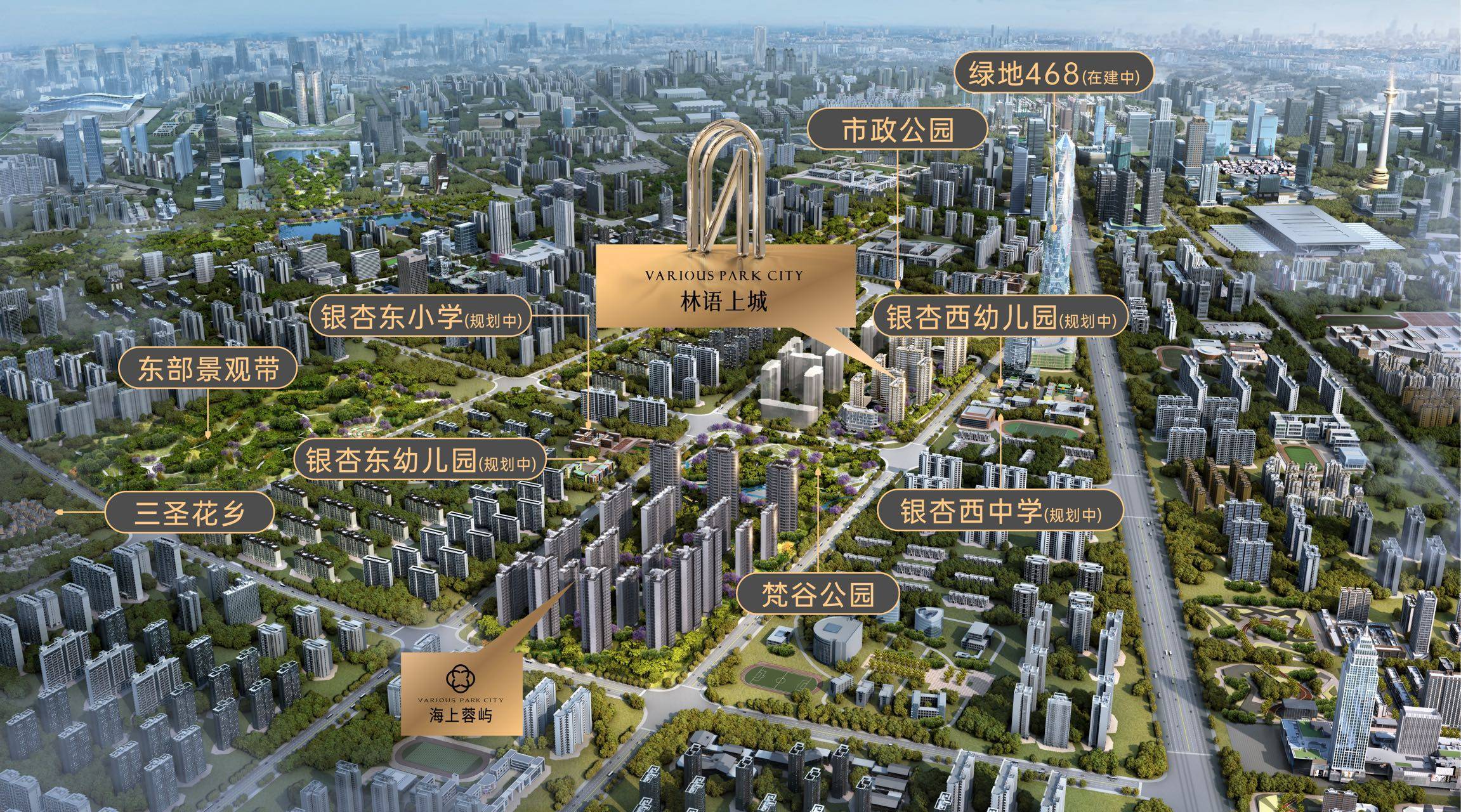 以人居梵谷公园为核心,规划文教、生态绿廊、运动休闲、商业服务、高端住区等多元化生活空间。
